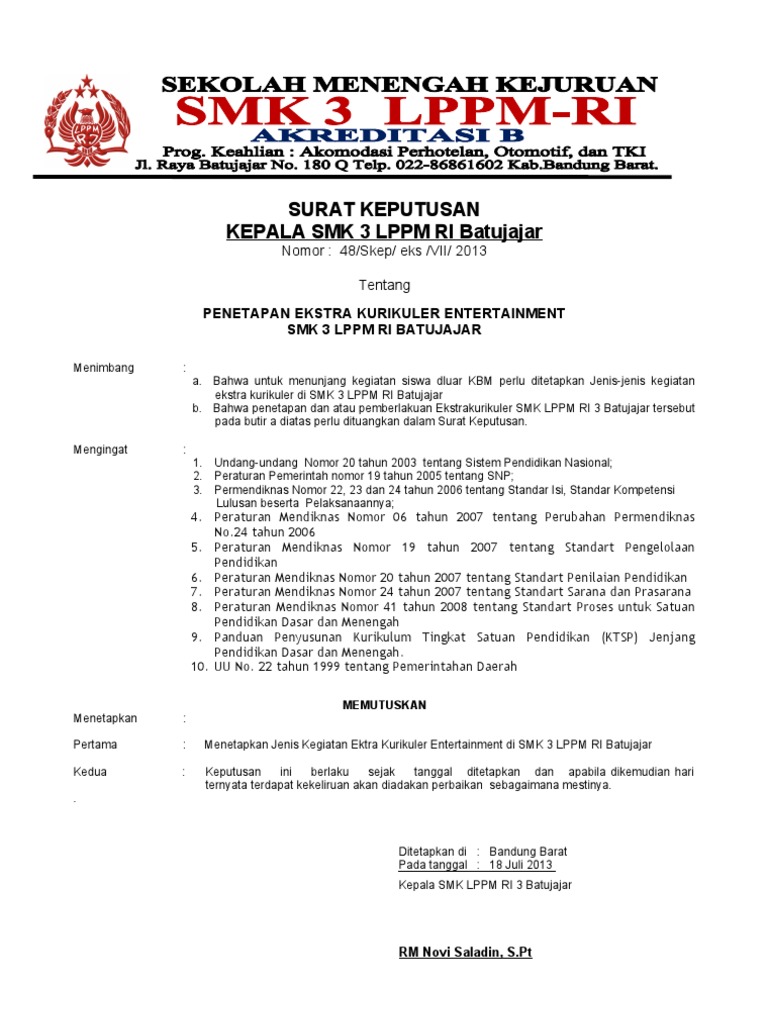 Contoh Surat Keputusan Tentang Ekstrakurikuler Contoh Surat from 2.bp.blogspot.com Check spelling or type a new query. Maybe you would like to learn more about one of these? We did not find results for: